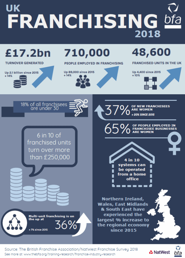 That, according to the 2018 British Franchise Association (BFA) – NatWest Franchise Survey, is the number of jobs that the UK franchise industry is responsible for. That’s a lot of jobs. What is more, over 50% of those jobs are full-time.